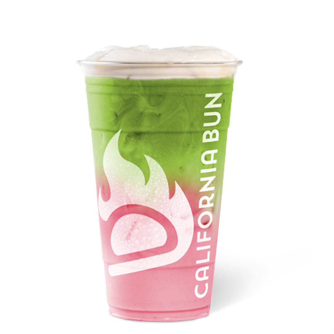 A wicked iced potion of house-made fresh raspberry oat milk and matcha.
